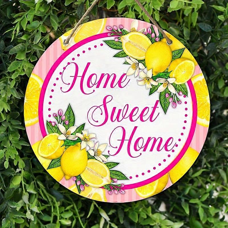 Lemon Style Wooden Hang Tag Sign, Sweet Home Pink Lemon - Farmhouse Decor, Round Wreath Sign for Summer, Front Door & Wall Decor (8x8")