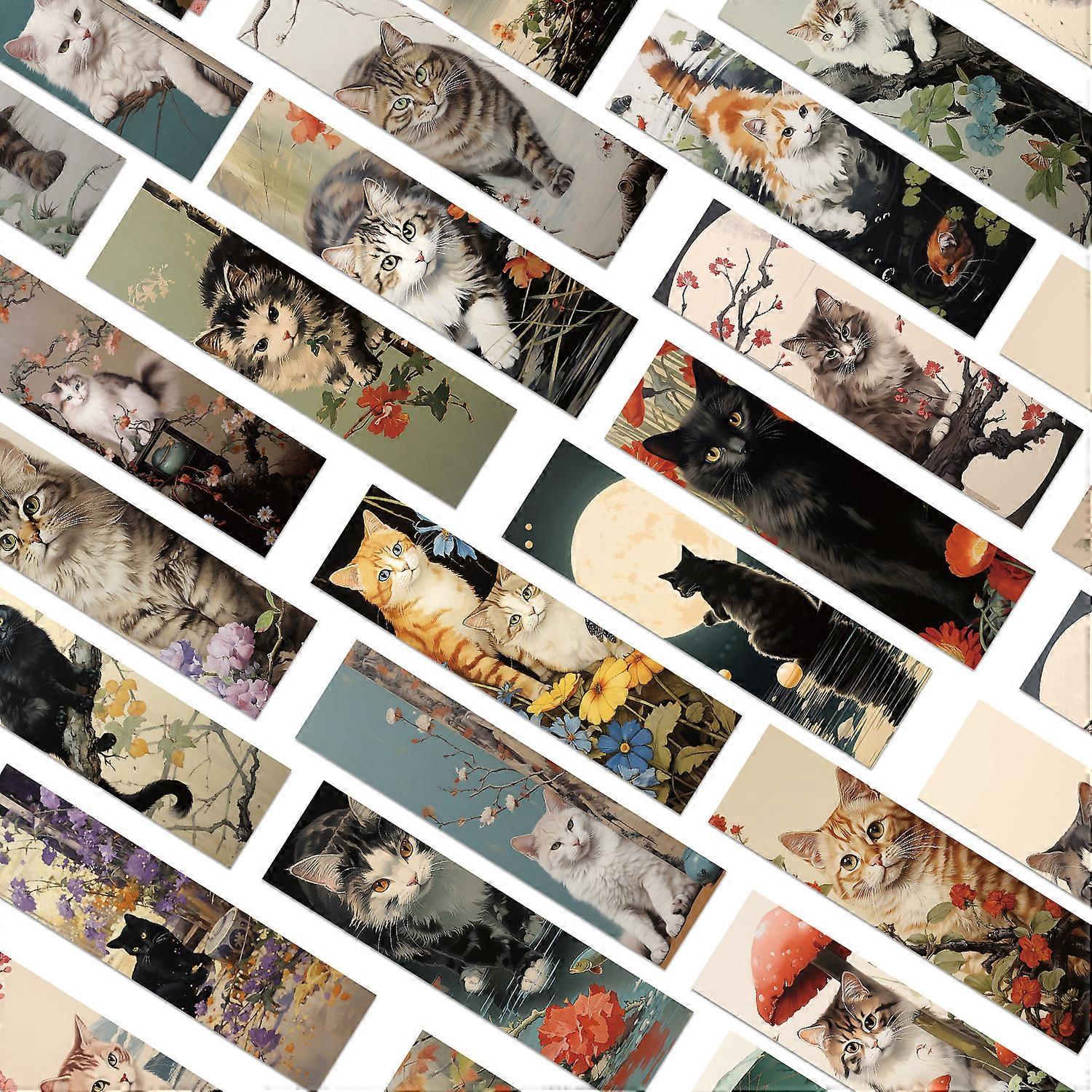 30 Retro Japanese Cat Theme Simple Journaling Artistic Creative Materials Instagram Reading Paper Bookmark DIY