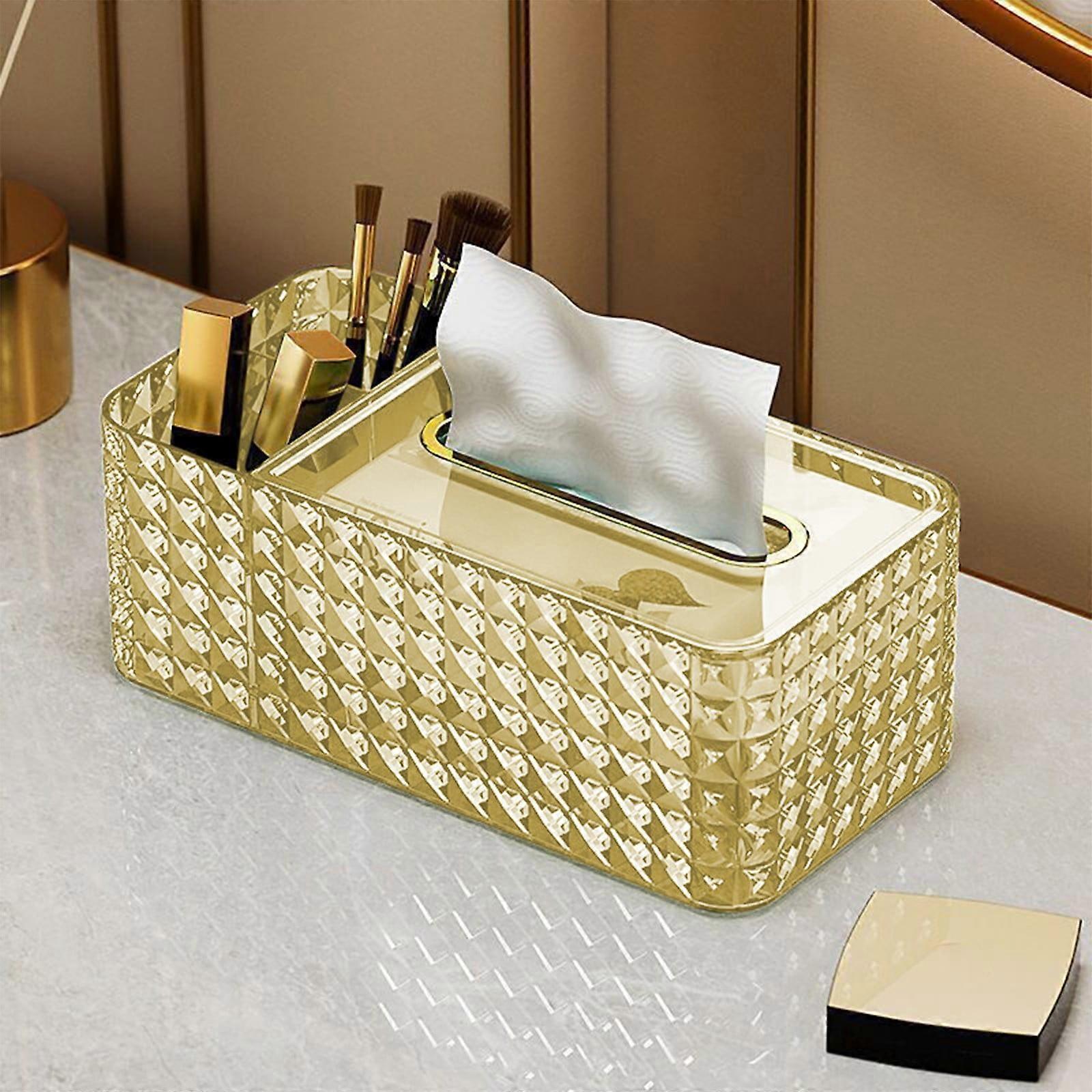 Square Tissue Box Cover - Multi-Functional Holder with Storage for Tissues & Remote, Compatible with Cube Tissue Boxes, Bedroom Organizer