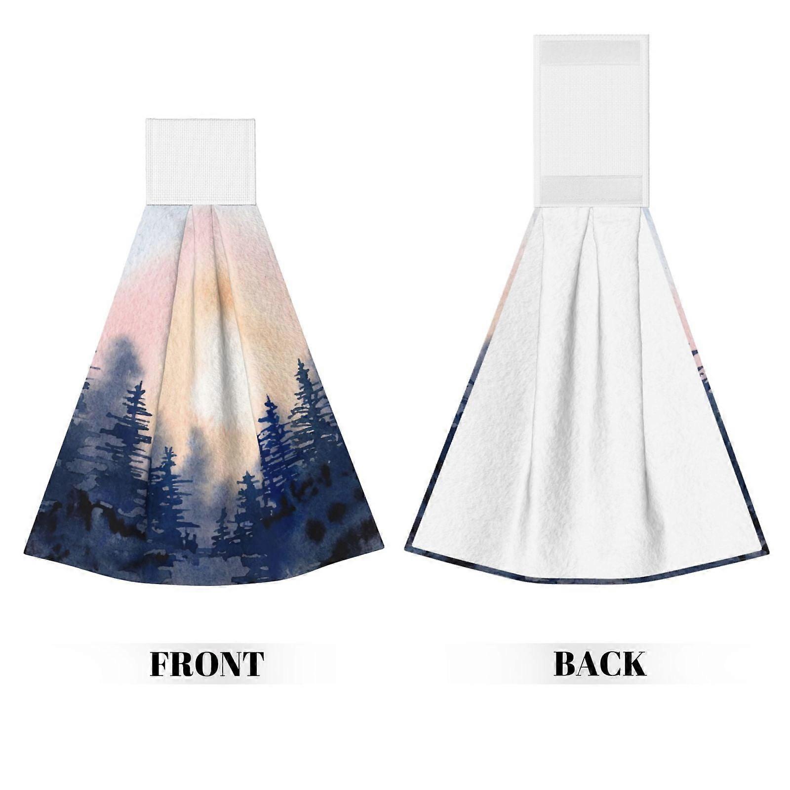 Forest Scenery Series Sunset Hand Towels With Velcro Loop, Coral Velvet Hand Wipes For Kitchen & Bathroom