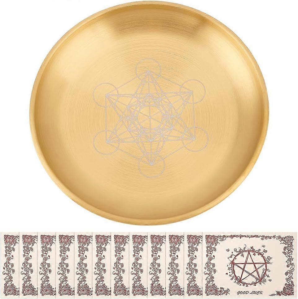 5.5Inch Gold Offering Prayer Ritual Bowl Stainless Steel Ritual Plate with 12Pcs Parchment for Smudging Decoration Trays Meditation Candle Holder (Hex