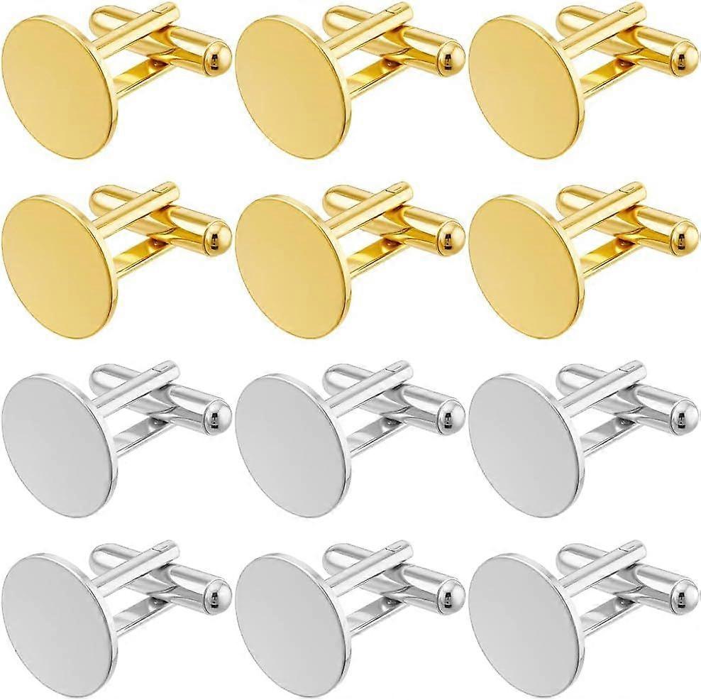 1 Box 20Pcs 15mm Silver and Gold Cufflinks Button Cufflinks Bulk Alloy Brass Round Tray Flat Blank Business Suits Studs Settings Cuff Link for Men Bus
