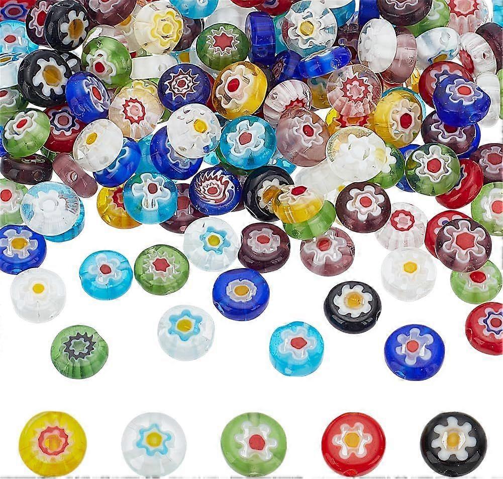 150Pcs Lampwork Glass Beads 7-9mm Millefiori Flat Round Flower Spacer Beads Flower Glass Loose Beads for DIY Bracelets Earring Necklace Jewelry Making