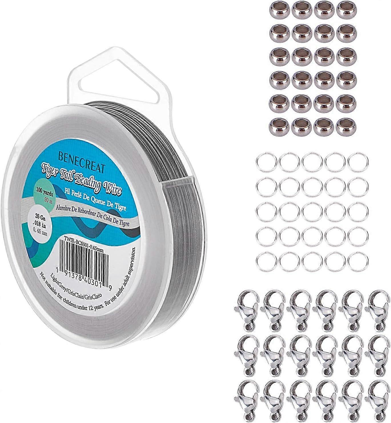 300-Feet 0.46mm Stainless Steel 7-Strand Beading Wire with 200pcs Jump Rings 50pcs Crimp Beads and 30pcs Lobster Claw Clasps for Jewelry Making