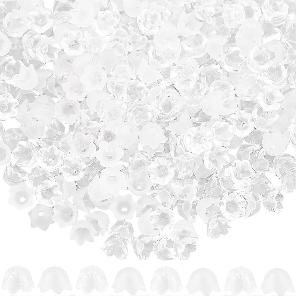 1 Box 600Pcs Large Trumpet Flower Beads Bulk Acrylic Bead Caps Transparent Tulip Lily Bellflower Floral Spacer Loose Beads End Caps for Jewelry Making