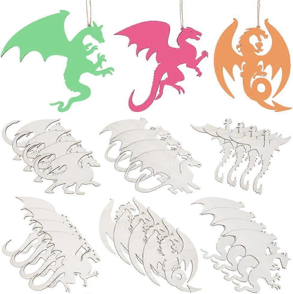 24Pcs 6 Styles Wood Dragon Cutouts Unfinished Wooden Dragon Hanging Ornaments Dragons Embellishments with String DIY Animal Craft Gift Tags for Home P