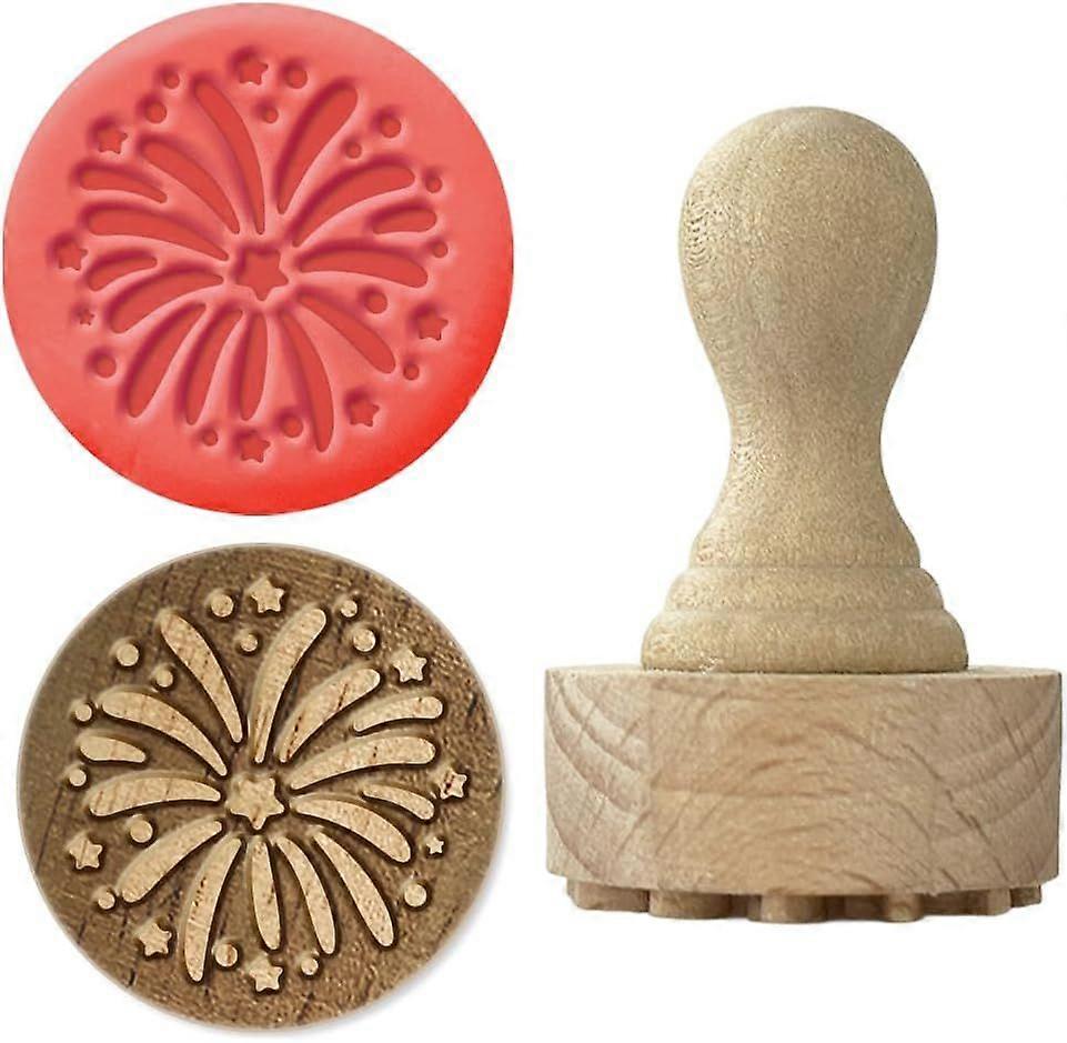 Fireworks Wood Stamps with Handle 1.7x1.1 Inch Wooden Clay Stamp Wooden Pottery Stamps Ceramic Pottery Stamp Wood Handle Tools for Clay Card Making an