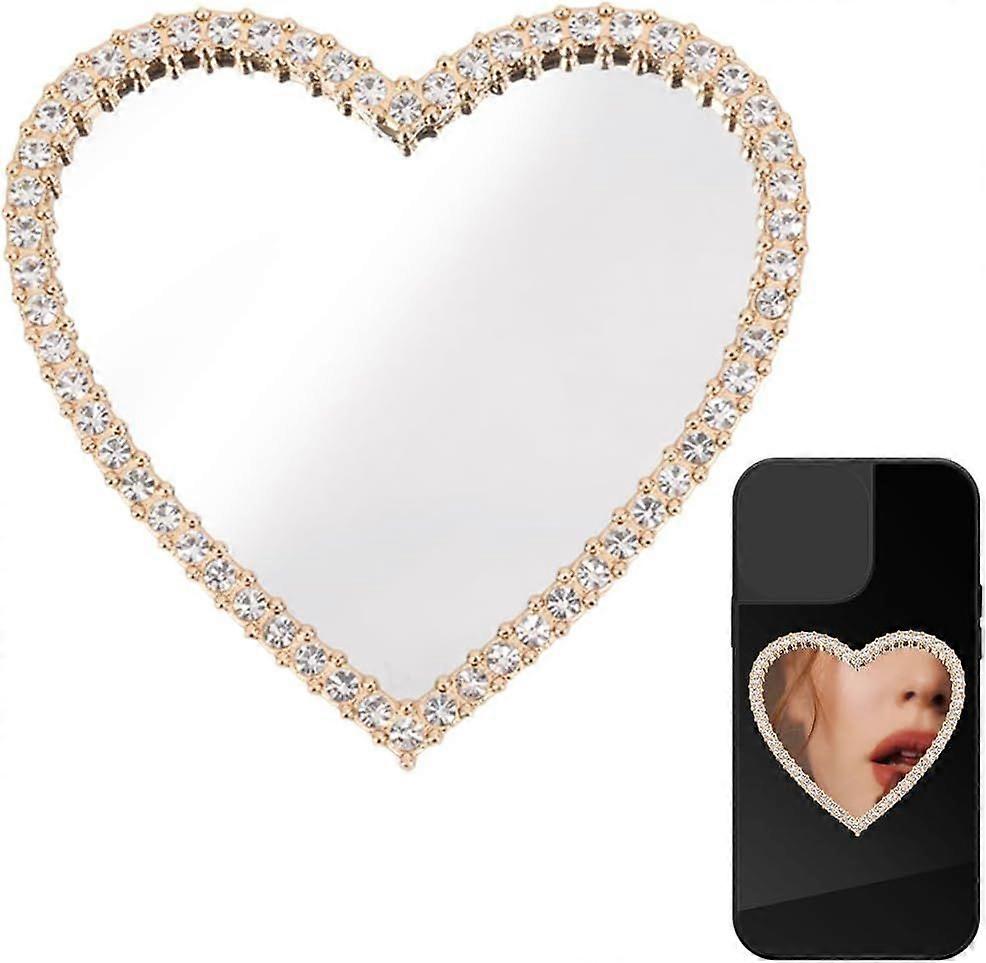 1 Box 2Pcs Makeup Mirror Phone Case Mirror Phone Charms Gold Rhinestones Glass Heart Makeup Smartphone Decal for Cellphone Basic Cases Back Accessorie