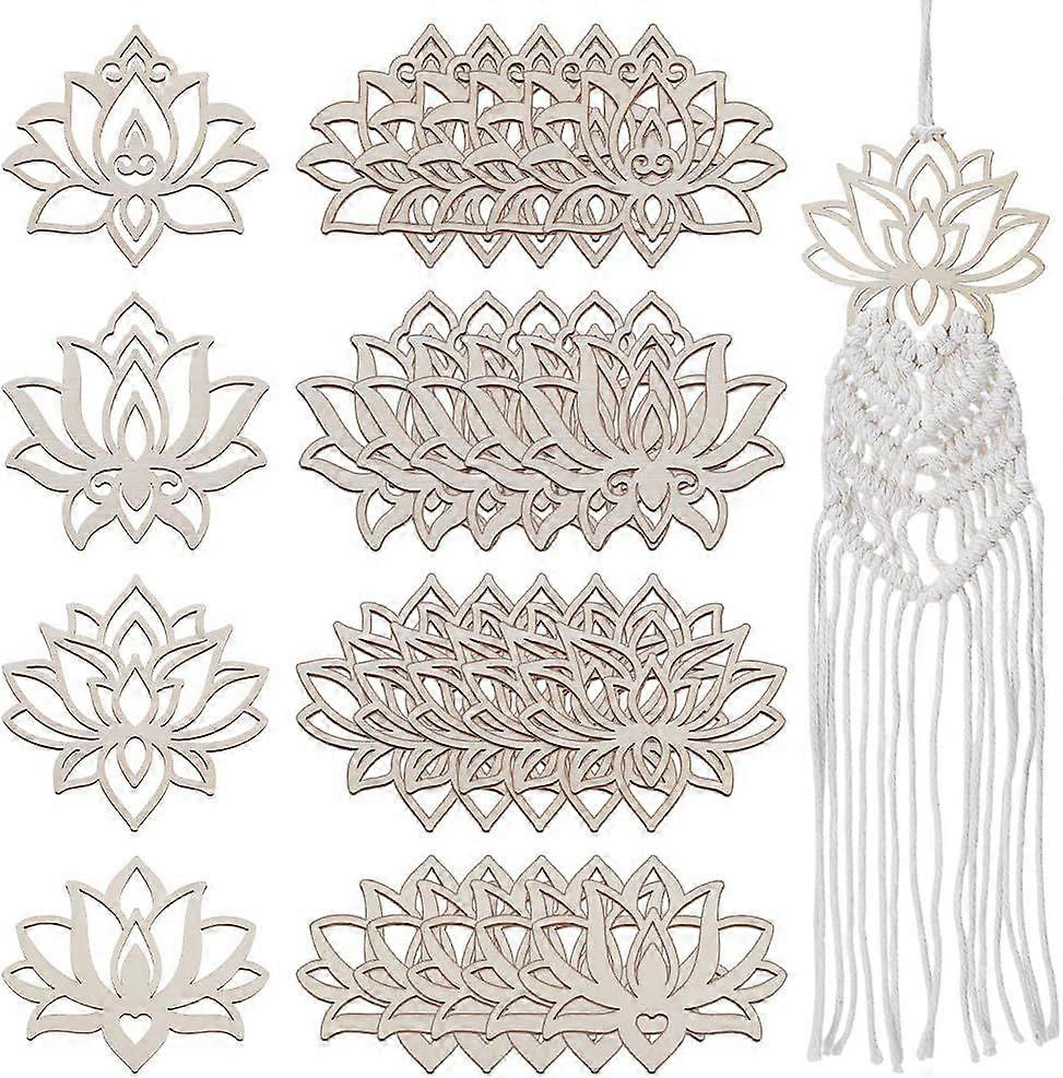24pcs 4 Styles Lotus Dream Catcher Wooden Rings Wood Lotus Dream Catcher Hoops Lotus Macrame Ring Wooden Hoop Craft Rings for DIY Craft Dream Catcher
