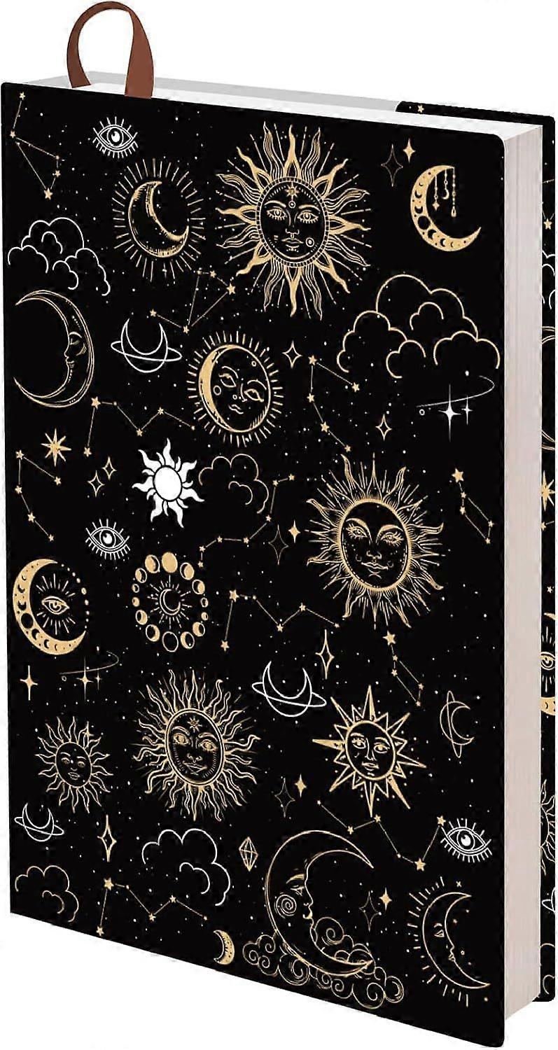 SUN MOON STARS BOOK SLEEVE: book cover comes with a ribbon bookmark makes it easy to find specific pages and very convenient to use.sun moon stars pattern is brightly colored and creative decorate your book cover very well. A5 BOOK COVERS: Approximately 12.4x8.8inch(31.4x22.4cmSuitable for A5 books 8.3x5.8inch(21x14.8cm) and below notebooks. WASHABLE BOOK SLEEVE: book covers are made of polyester fabric soft washable and reusable comfortable to touch easy to clean. EASY TO INSTALL: No books will be ruined. Simply stretch book protector over the cover of your hardcover book no tape or glue needed so you can reuse it. No need to worry damaged book corners or scratched covers. WIDELY APPLICABLE: book case cover protect your large textbook science book storybooks hardcover books and so on deal choice for bookworms readers. suitable for birthday back to school Christmas Thanksgiving Day for your family and friends ideal choice for Mother's Day Father's Day gifts.