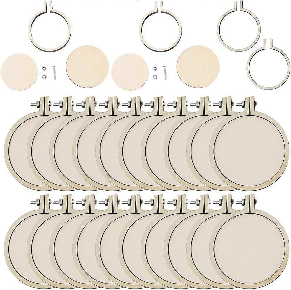 20 Sets 2 Inch Stitch Ring Hoop Embroidery Hoop Frame Adjustable Circle Round Small Mini Wooden Embroidery Rings Bulk for Art Crafts Handy Sewing Chri