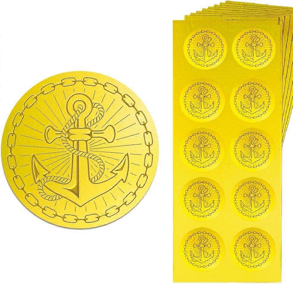Gold Embossed Sticker Seal Anchor 1.4 Inch 150Pcs Self Adhesive Golden Around Embossing Decals for Invitation Envelope Seal Gift Card Certificate Deco