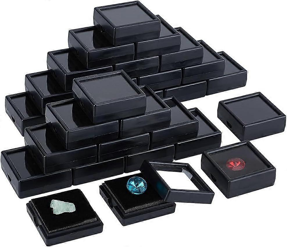 48 Pack Gemstone Display Box Plastic Diamond Display Case Black Jewelry Box with Clear Lids Sponge for Treat Gems Coins Diamond Gift Packing 1.57x1.57