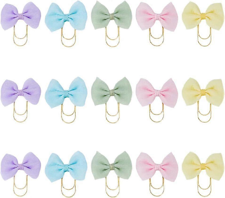 15Pcs 5 Colors Paper Clips Golden Metal Paperclips 2.9x2.7in Planner Clips Soft Cloth Bowknot Bookmarks Dainty Paperclip Planner Accessories for Woman