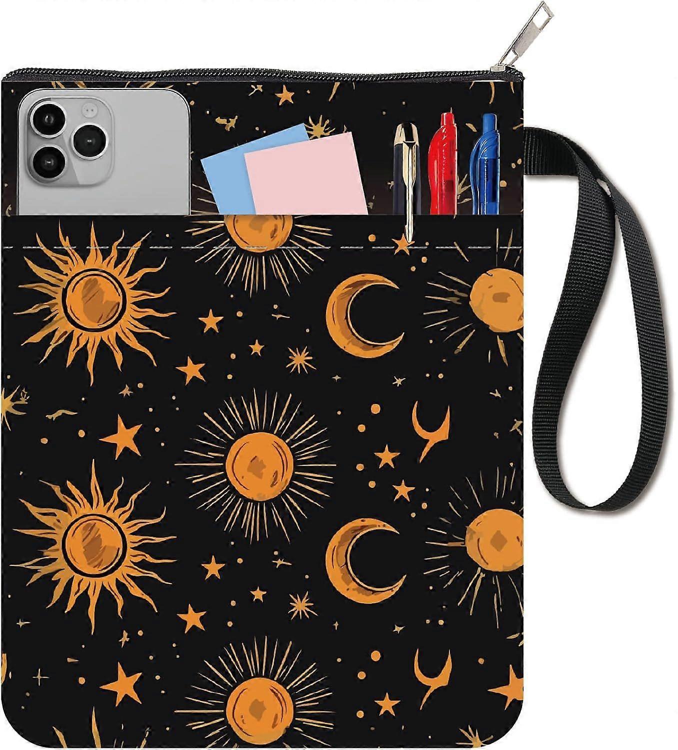Sun Moon Star Book Sleeve with Pocket and Zipper Book Cover Pouch Protector Double Sided Washable Fabric Hardcover Reading Accessories Book Club Gifts