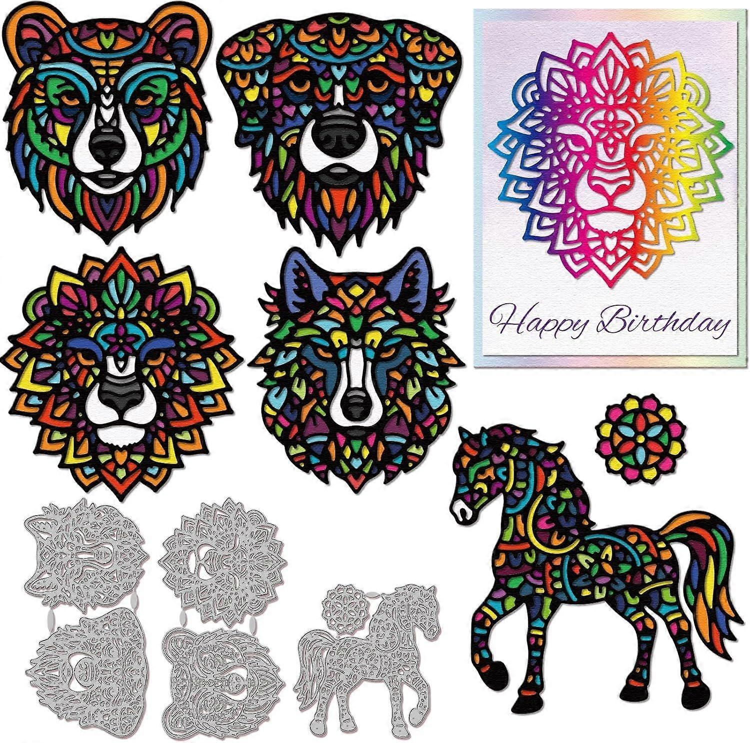 Mandala Animals Cutting Dies for DIY Scrapbooking Metal Lion Horse Cut Die Mandala Flowers Die Cuts for Card Making Embossing