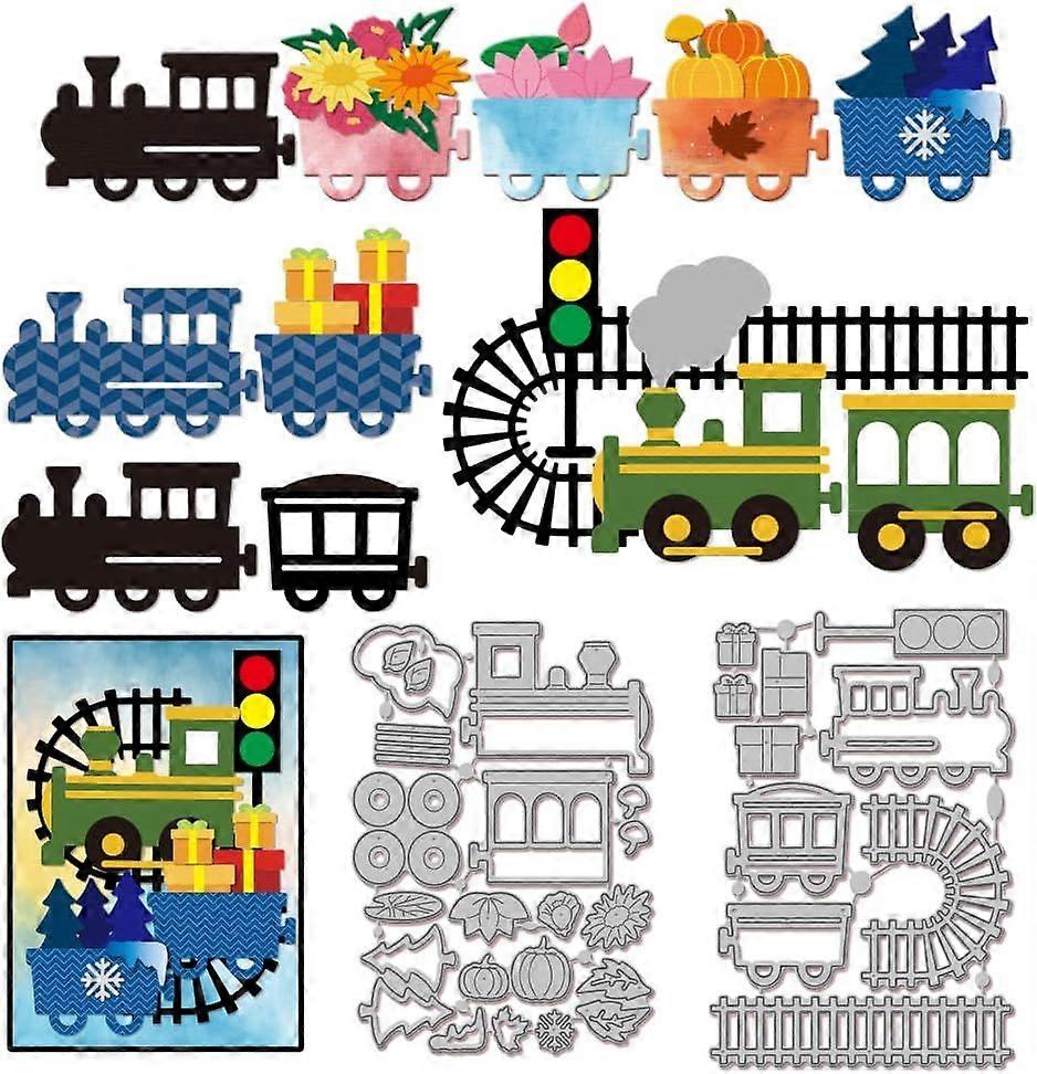 Train Tracks Cutting Dies for DIY Christmas Scrapbooking Railway Locomotive and Train Cargo Box Metal Die Cuts for Card Making Embossing Craft Decor