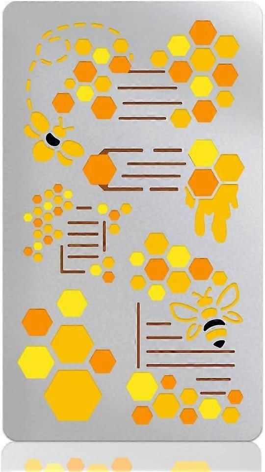 Metal Stencils for Craft Wood Burning Bees Stencils Stainless Steel Reusable Honey Comb Templates for Journaling Drawing Carving Engraving Scrapbookin