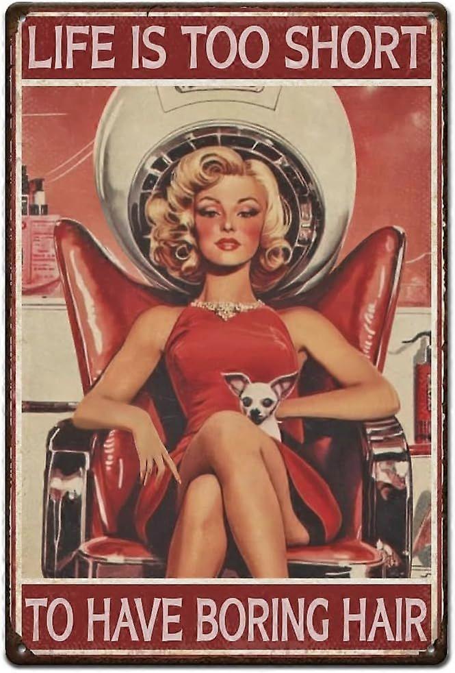Hair Salon Tin Signs Salon Hairstylist Metal Signs Beauty Woman Vintage Tin Sign Vintage Wall Art Funny Retro Decor for Barber Shop Bar Man Cave Pub B