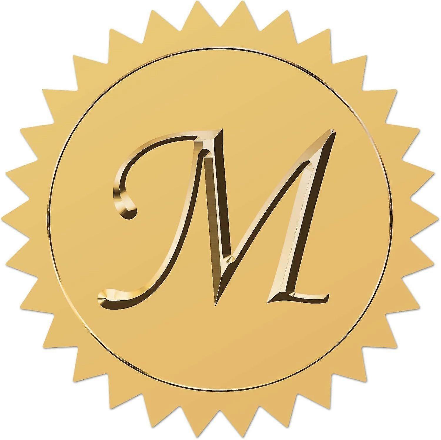100pcs Letter M Gold Foil Embossed Stickers 2" Initial Alphabets Vintage Foil Self Adhesive Sticker Decor Labels for Award Envelope Achievement Gradua