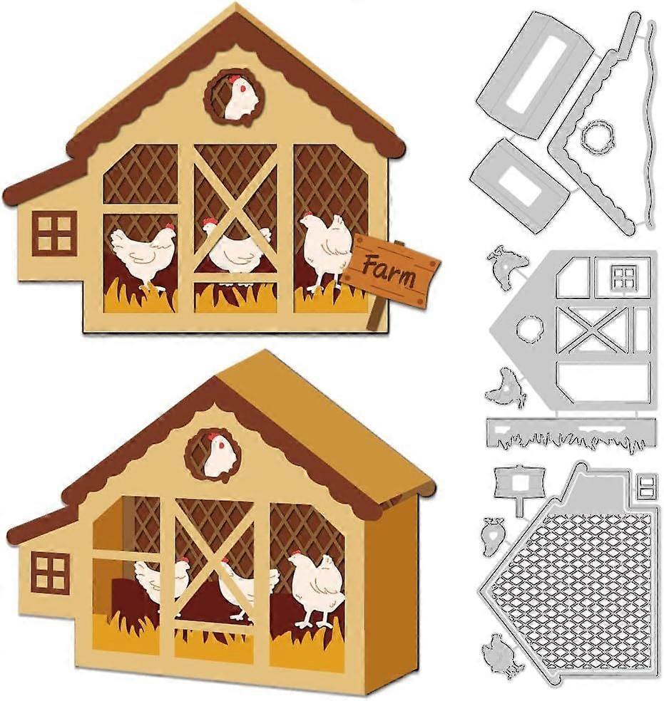 3D Chicken Coop Box Cutting Dies for Card Making Farm Frame Dies Carbon Steel Cut Die Border Stencils Scrapbooking Embossing Template for DIY Paper Cr
