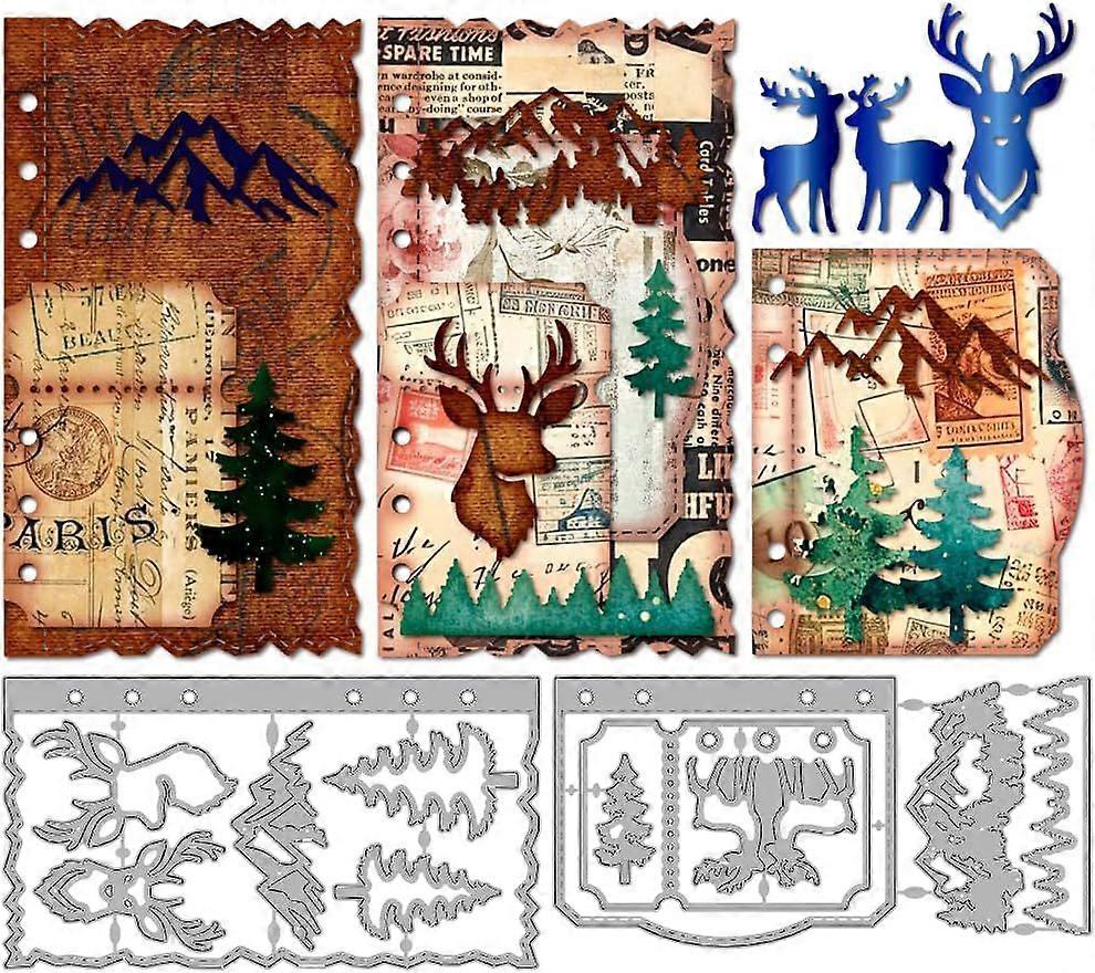 Forest Deer Mountain Metal Cutting Dies Tree Nature Die Cuts Planning Page Embossing Template Wild Animal Carbon Steel Stencils for Card Making Scrapb