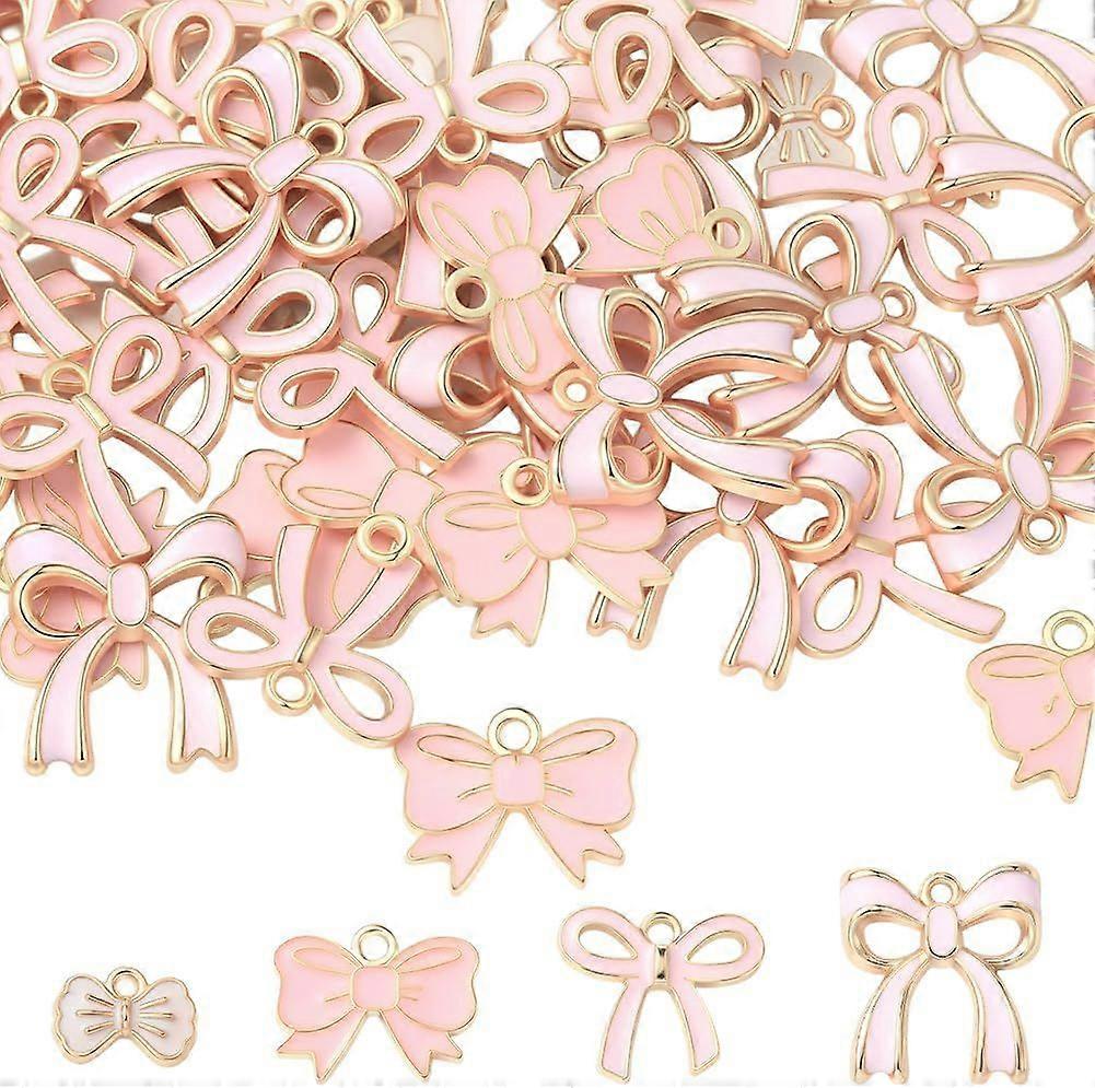 1 Box 4 Style 40-80Pcs Romantic Charm Enamel Flat Bowknot Charms Pink Pendants Bulk for Women Jewelry Making Earrings Necklace Bracelets