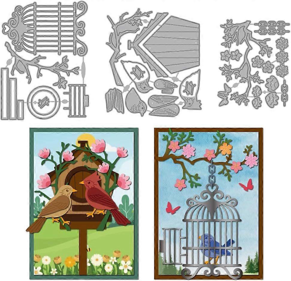 Bird Birdcage Metal Cutting Dies Flower Frame Die Cuts Template Branch Leaves Embossing Cutting Stencil Carbon Steel Die Cutting for Card Making DIY S