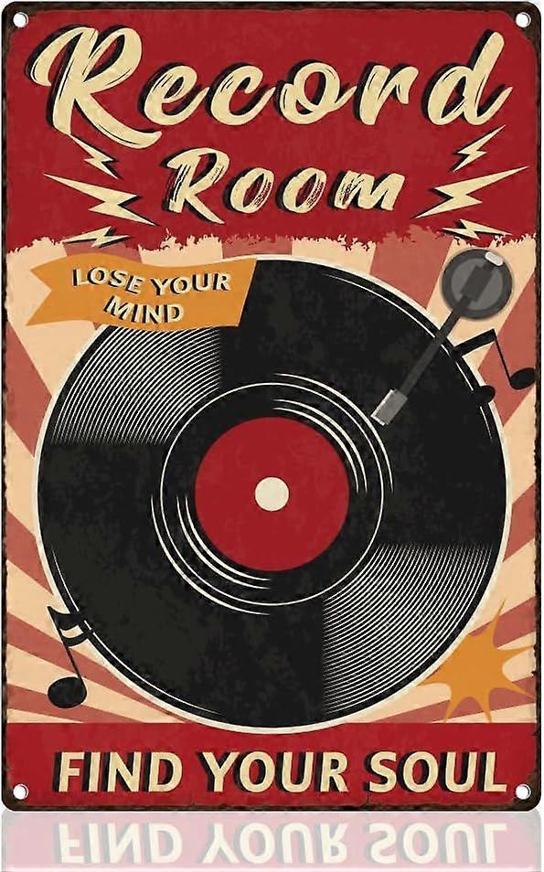 Record Room Tin Sign Retro Metal Wall Decor 8" x 12" Vinyl Records Music Wall Art Poster for Home Coffee Cafes Bathroom Gallery Man Cave Office Clubs