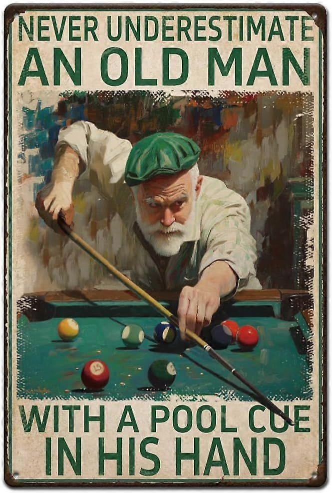 Old Man and Billiards Tin Signs Funny Metal Sign Vintage Tin Signs Vintage Wall Art Billiard Room Retro Decor for Bar Man Cave Billiard Room Cafe Club
