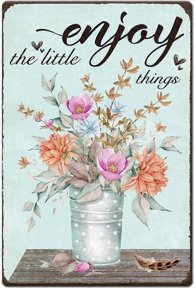 1pc Vintage Metal Tin Sign 7.87x11.81 inch Retro Iron Fresh Flowers Sign Enjoy The Little Things Flower Plaque Poster for Home Garden Cafe Outside Por