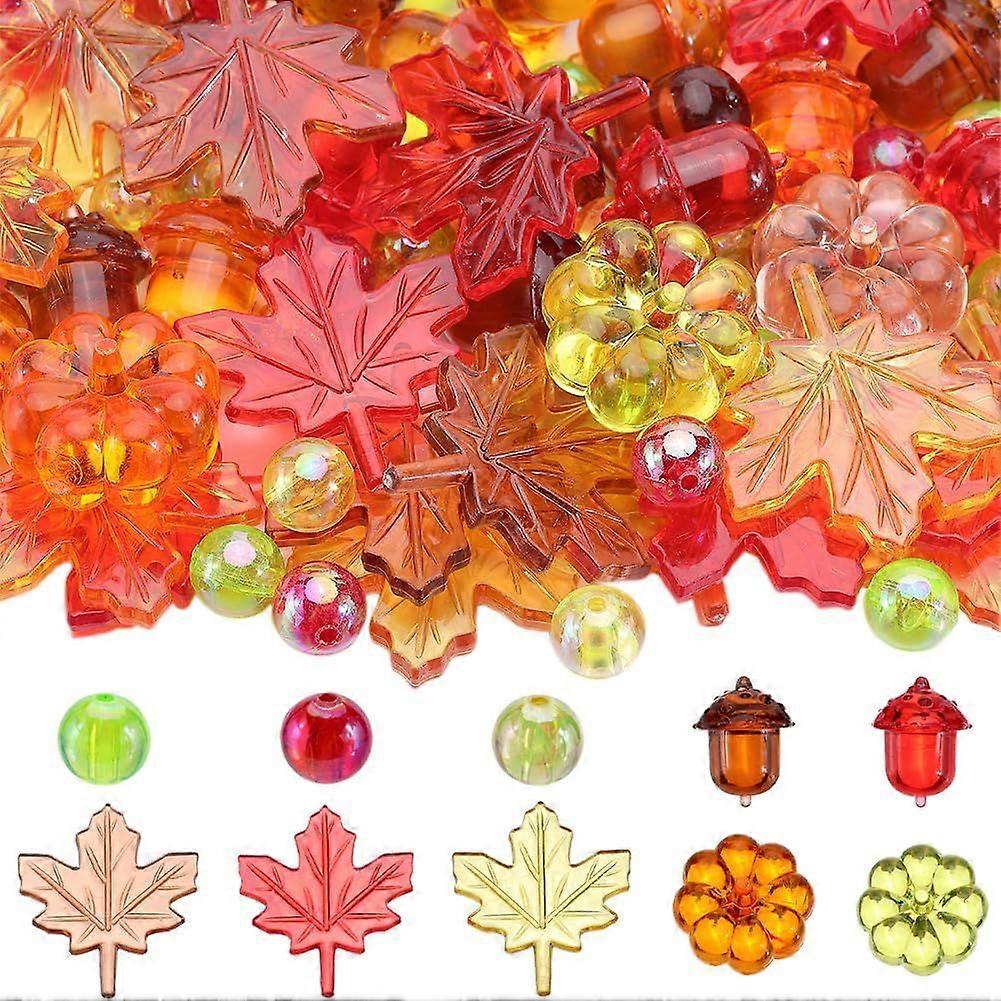 130Pcs Thanksgiving Vase Filler Fall Vase Fillers Decor Acrylic Pumpkins Leaves Cabochons Acorn Beads Autumn Harvest Decorations for Home Display Tabl