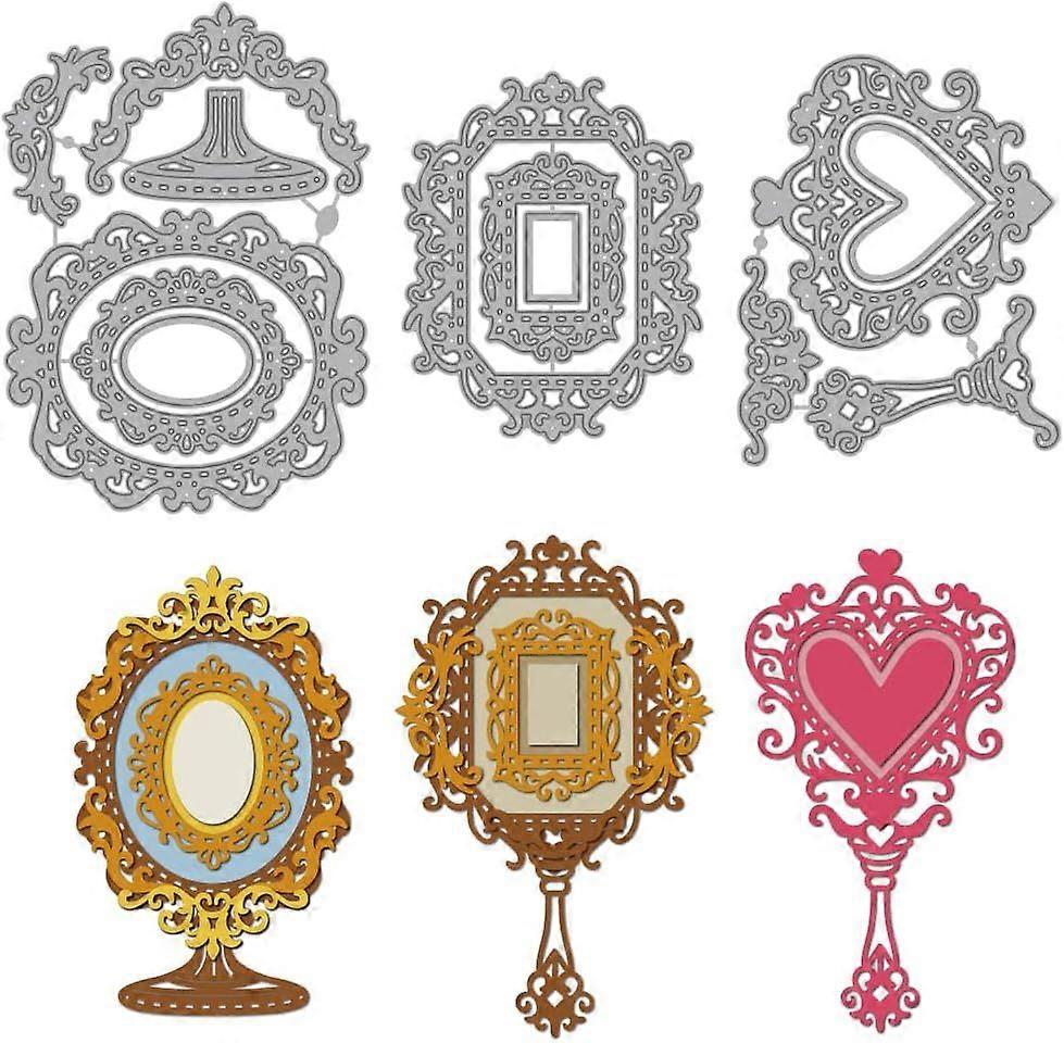 Vintage Victorian Mirror Cutting Dies Ovals Heart Mirror Metal Frame Die Cuts Template Base Floral Pattern Embossing Carbon Steel Stencils for Card Ma