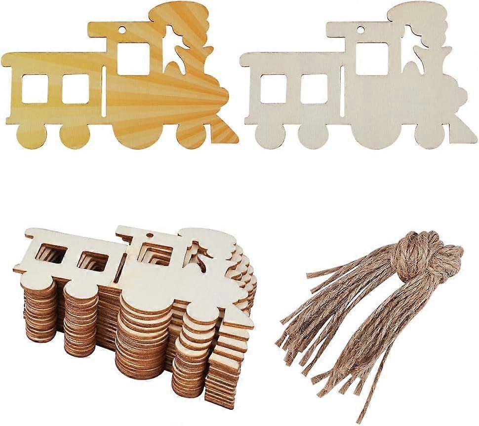 20PCS Train Wooden Cutout Vehicle Unfinished Wood Pendants Blank Wood Slices Ornaments Gift Tag Hanging Sets with Hole Ropes for Crafts Wedding Christ
