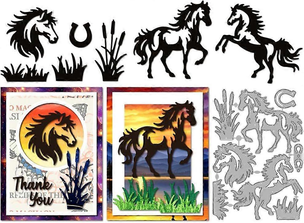 Horses Reeds Metal Cutting Dies Horse Heads Grass Die Cuts Plants Animals Embossing Cutting Stencil Carbon Steel Die Cutting for Card Making Scrapbook