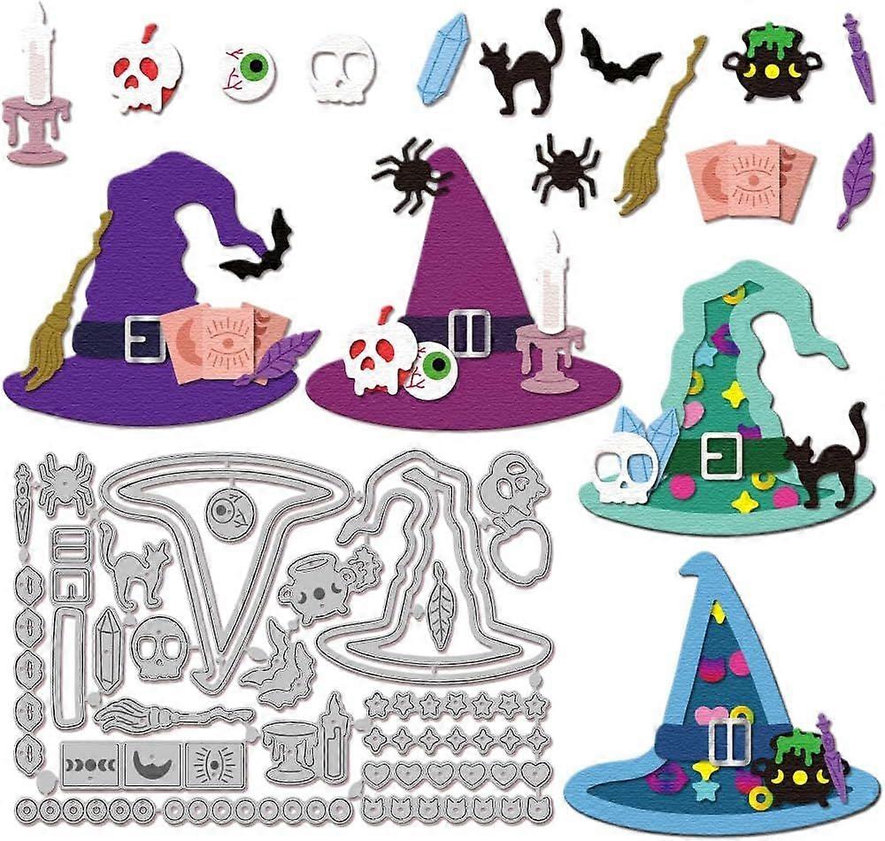 Packaging Includes: The package includes 1set/25pcs hat cutting dies the metal die cuts include various patterns of hat festival shaker black cat tarot cards gemstone candle potion eyeball broom quill poison spider bat etc. These different styles of die cuts will fulfill many of your diy requirements. Size: The metal cutting dies stencil is 153x101mm/6x4inch. These cut dies are designed different sizes which can meet your different needs. High Quality Material: The cutting dies stencils is made of carbon steel which is resistant and very sturdy for long time using cutting dies are not easy to deform or break. How to Use: Put the dies on the colored paper or thin cardpaper to cut put it between the cutting dies plates and put them in your cutting machine(not included) finally you can get your pretty crafts. Wide Application: The metal cut dies is perfect for paper crafts album decoration card making theme invitations photo scrapbooking gift labels embossing album art crafts and other crafts add to your work masterpiece!