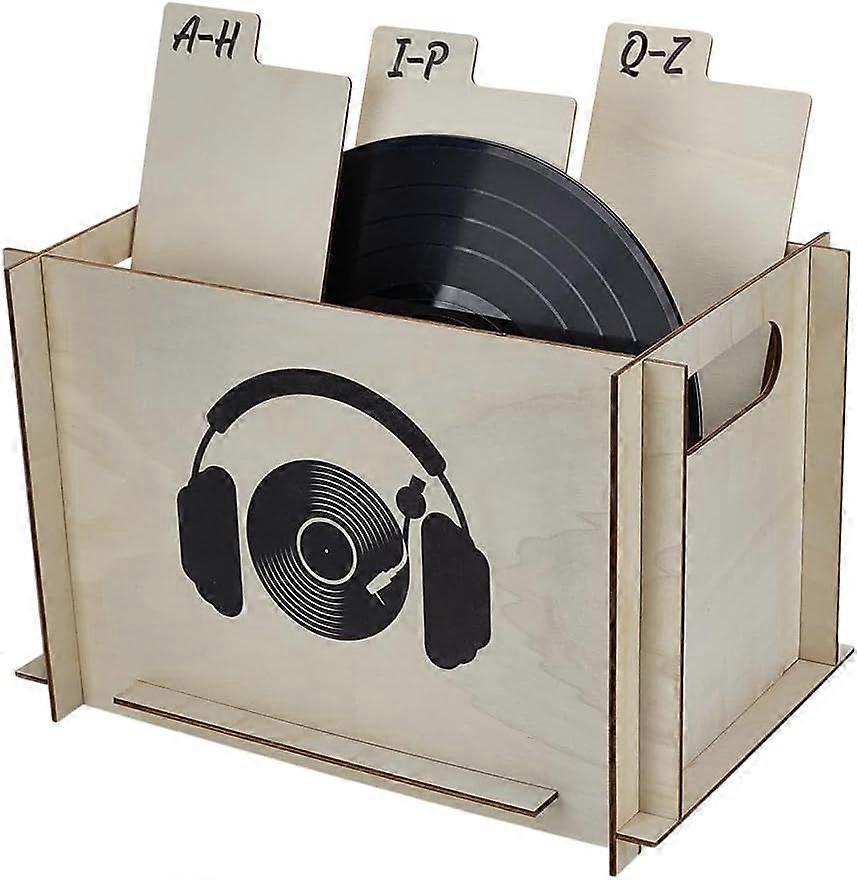 Record Storage Crate 10x9.25x13.8inch Vinyl Albums Storage Pale Goldenrod Color Wooden Holder Headphone Print Wood Storage Boxes with Hole Handles for