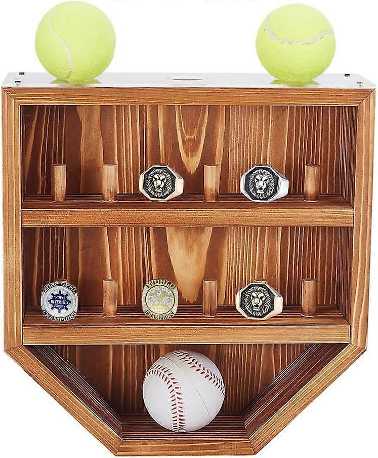 Baseball Ring Holder 12 Ring Posts Championship Ring Display Case Wooden Wall Mount Shadow Box 4 Baseball Organizer Display Stands for Collection Spor