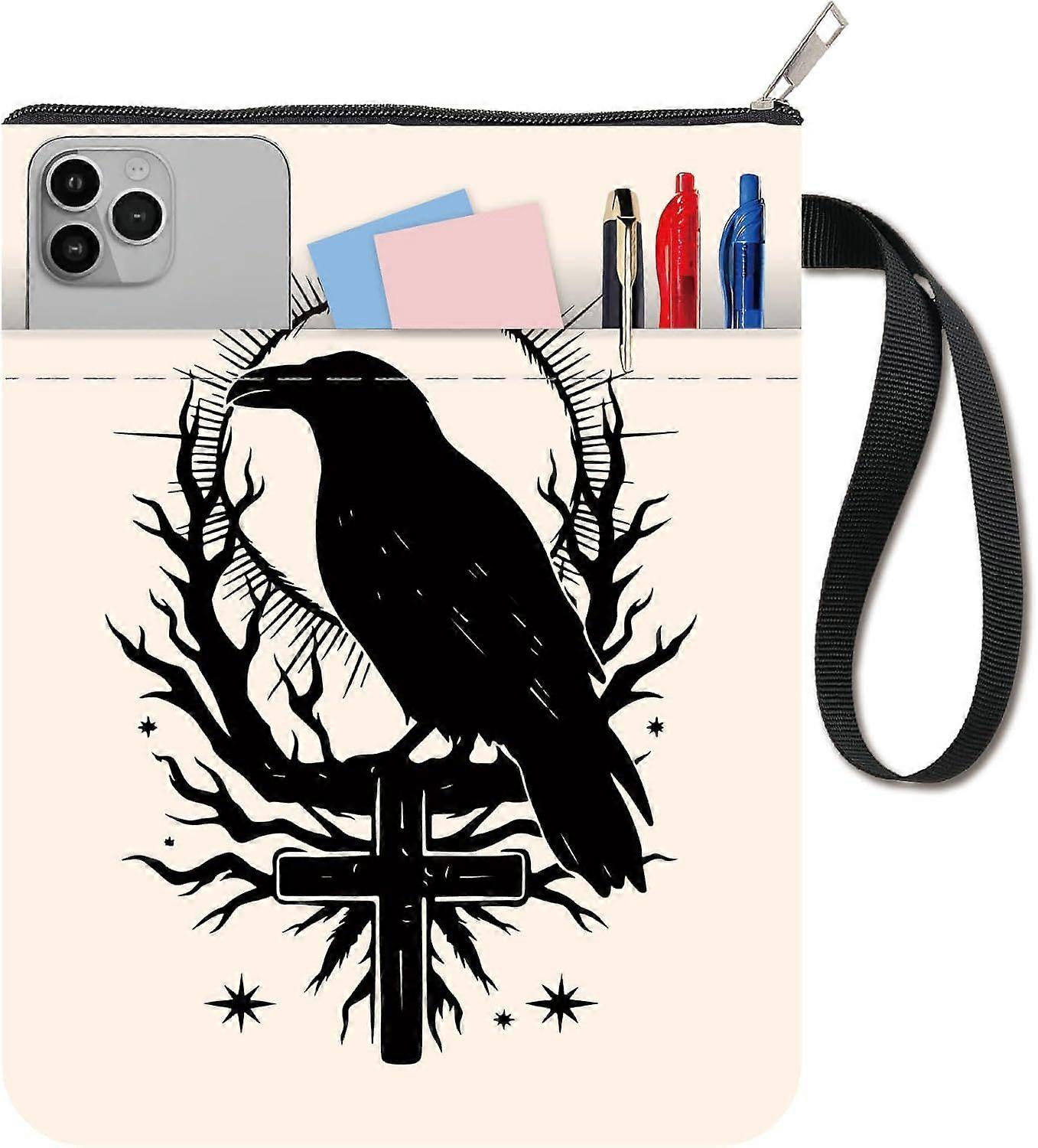 Crow Book Sleeve Cover Cloth Book Pouch Protector 11 X 8.7 Inch Double Sided Tree Branches Sun and Stars Books Cloth Zipper Front Pocket Washable Fabr