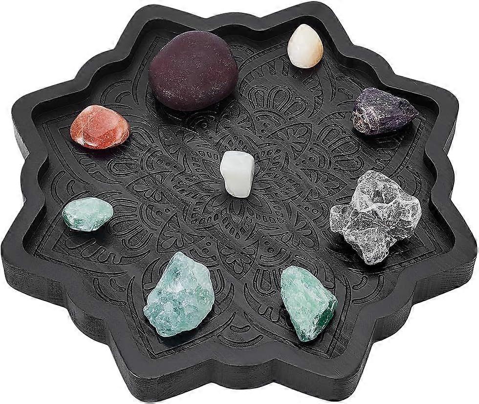 Tray for Stones Crystals and Stones Flower Wooden Storage Holder Tray Black Fancy Decorative Jewelry Display Trays Organizer Bowl Decor