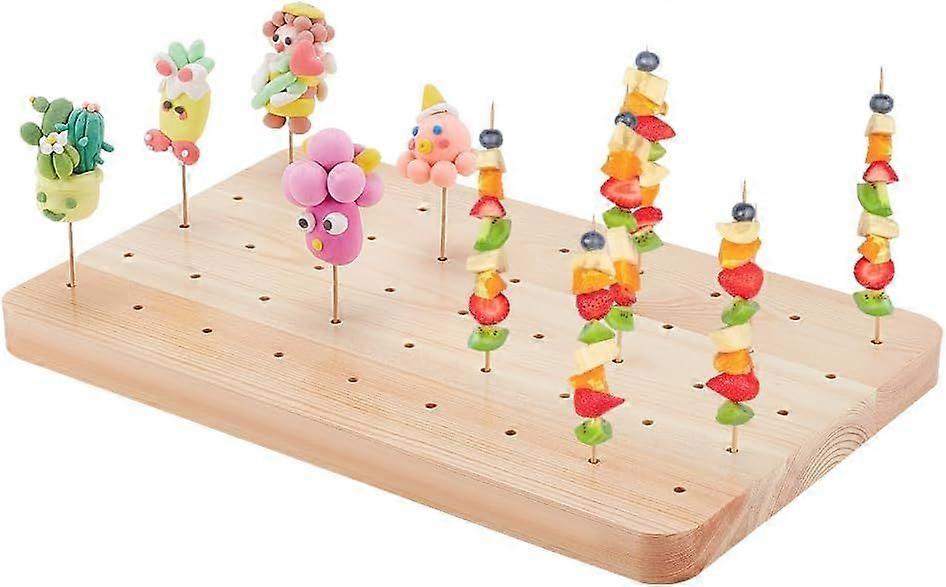 Wooden Skewer Display Holder 45 Holes Food Fruit Kabobs Skewers Stand Board Catering Supplies Clay Figurines Display Trays for Appetizers Cocktail Par