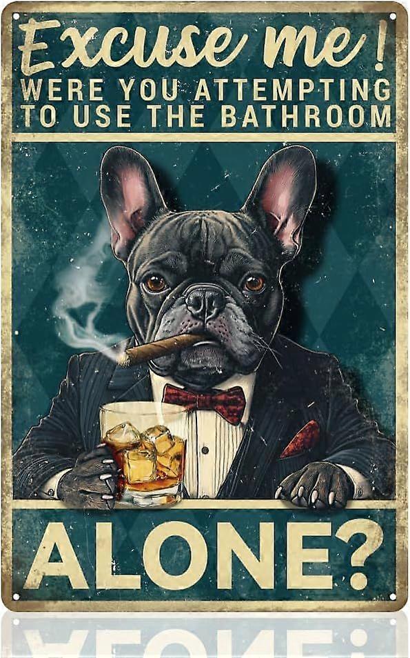 French Bulldog Dog Bathroom Wall Decor Sign Were You Attempting to Use Bathroom Alone Vintage Metal Tin Sign 12 x 8 Inches