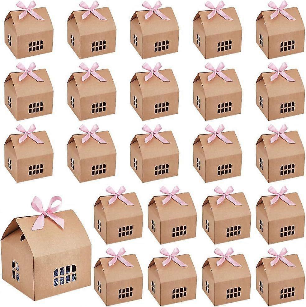 24Pcs Brown House Shaped Gift Boxes 5x5x5.3 Inch Kraft Paper Candy Box Cardboard Treat House Boxes for Wedding Baby Shower Birthday Party