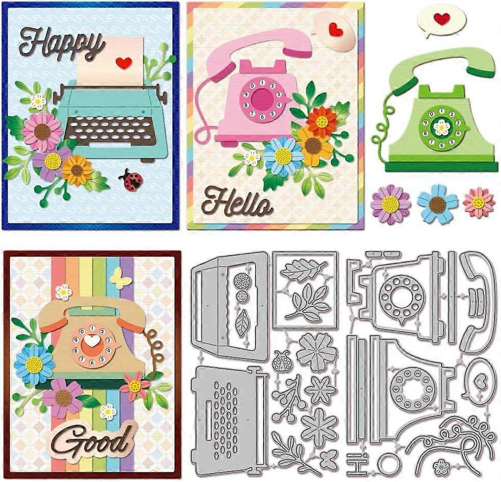 Vintage Typewriter Flower Cutting Dies for Card Making Telephone Handset Metal Die Cuts Stencils for DIY Scrapbooking Embossing Album Decoration