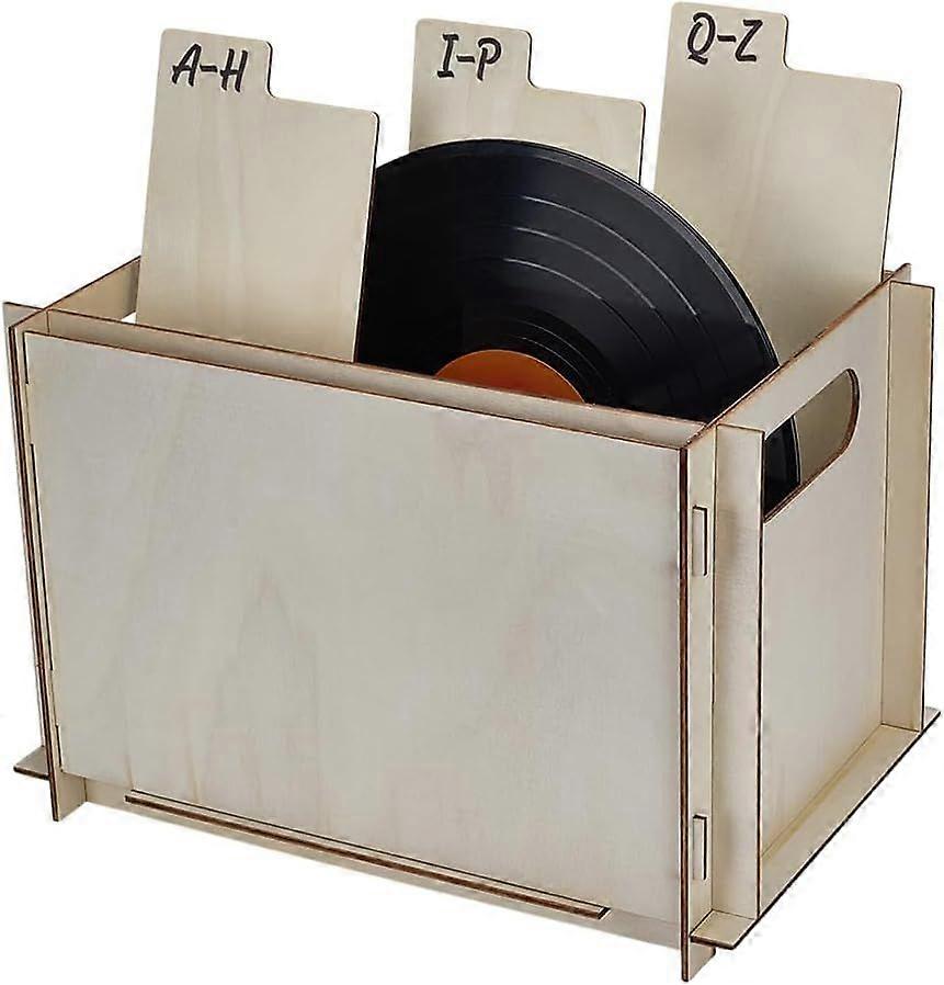 Record Storage Crate 9.6x10x14.96inch Vinyl Albums Storage Pale Goldenrod Color Wooden Holder Rectangle Wood Storage Boxes with Hole Handles for Music