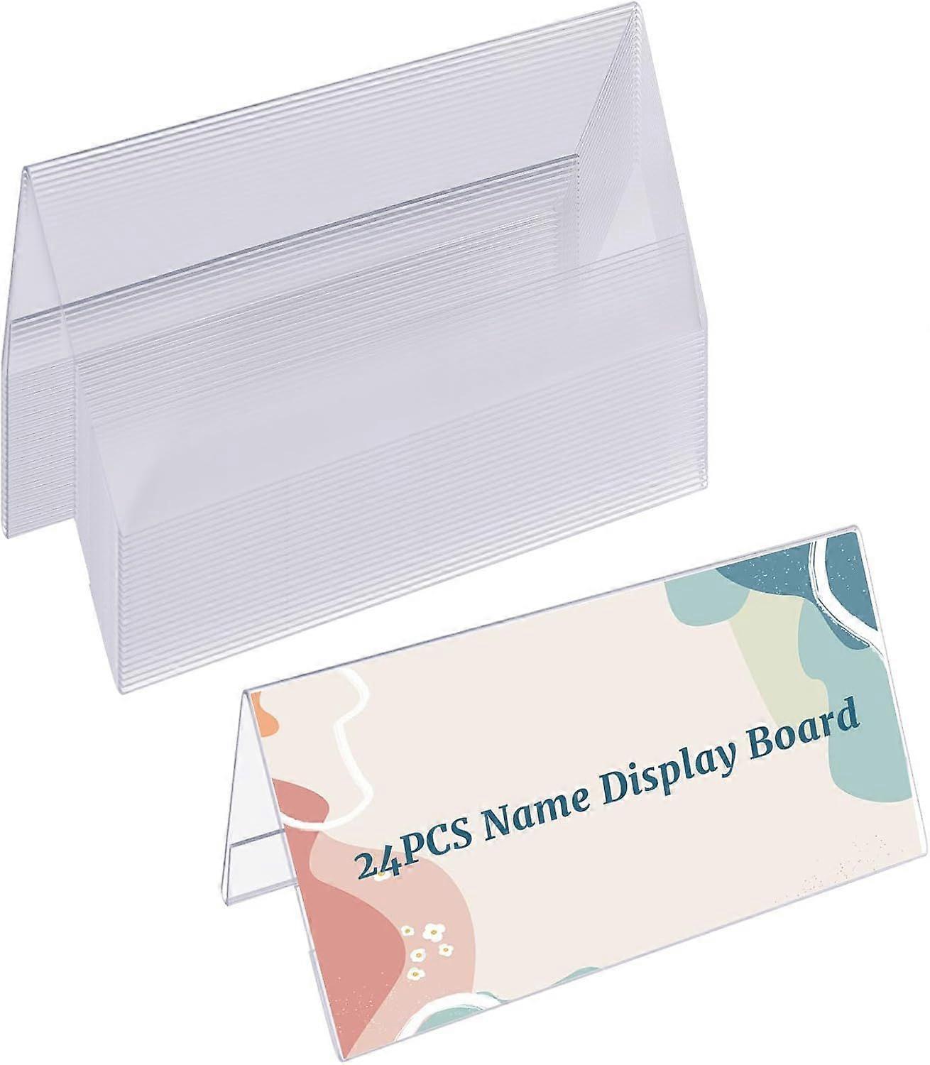 24Pcs V-Shaped Name Display Board 4.7x2.2x2.4inch Acrylic Desk Name Plate Holder Clear Plastic Shelf Label Holder for Applicable to Table Number Food