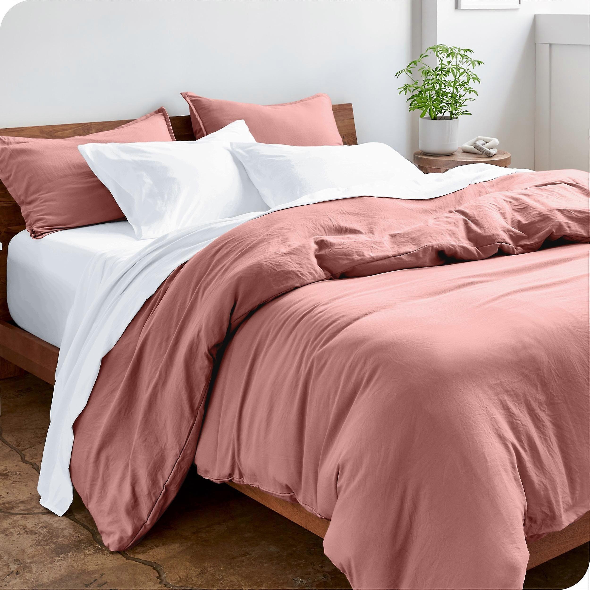 Bare Home Premium Washed Microfiber Duvet Cover and Sham Set Dusty Rose Queen 3 Piece