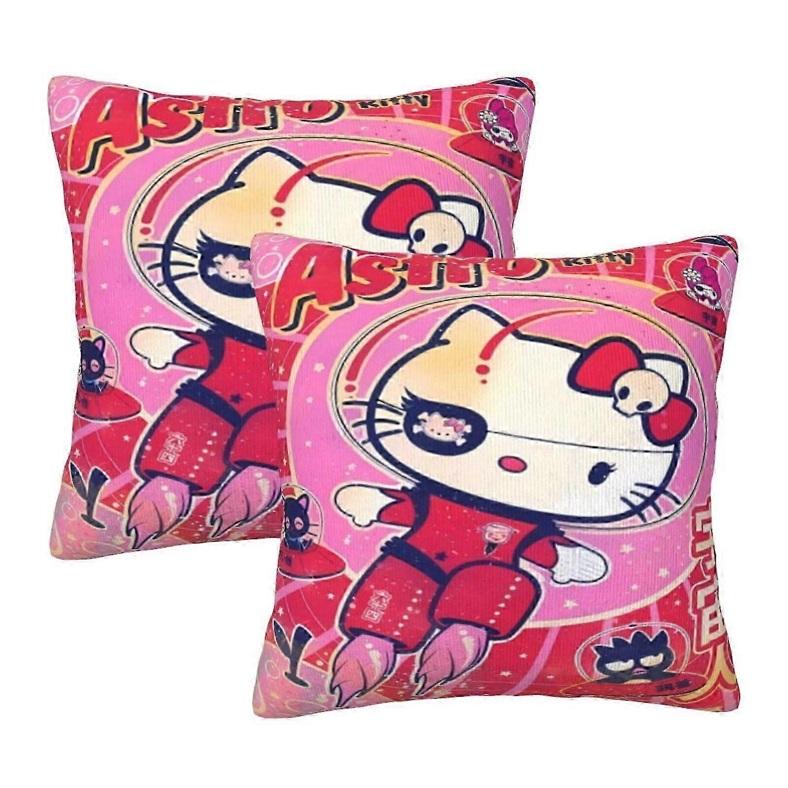 Hello Kitty Throw Pillow Covers, Pack of 2 Pillowcases for Sofa Bed Living Room 18"X18