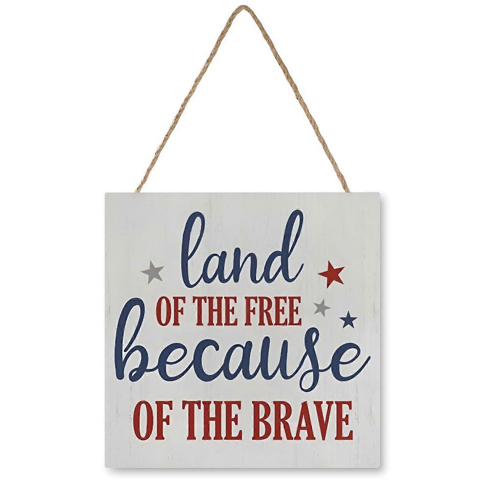 Funny Wooden Sign 12x12 inch - Land of the Free Because of the Brave, Farmhouse Hanging Decor, Inspirational Quote Plaque