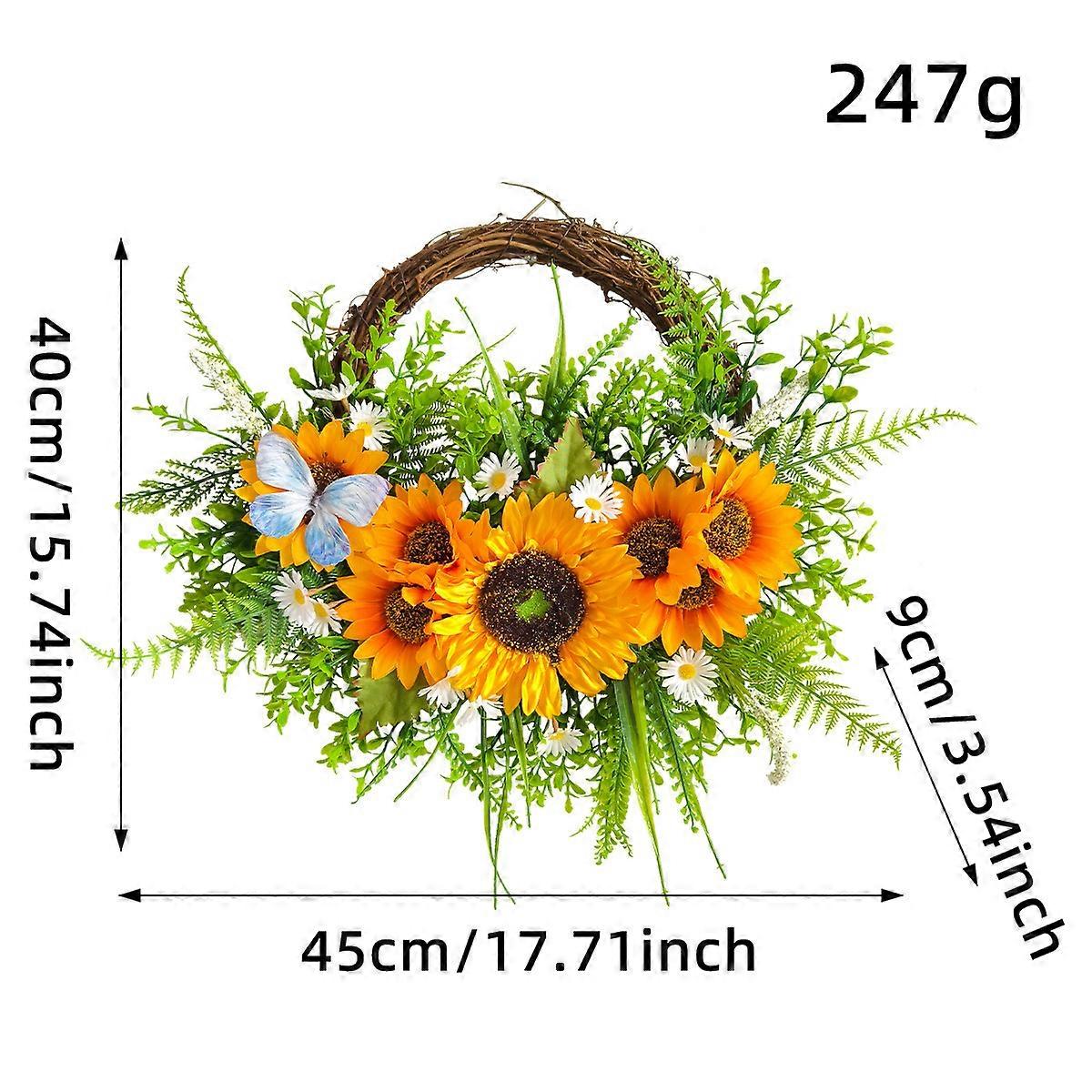 Harvest Festival Decorations, Artificial Green Plants, Sunflower Wreath, Thanksgiving Sunflower Home Wall Hanging, Dried Branch Vine Circle